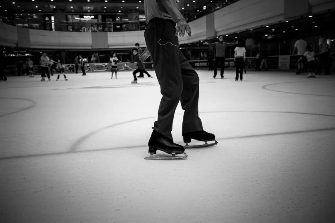 在国贸冰场,CBD区域里看起来最轻盈自由的地方,时间也是以分秒计算的,一堂课半小时,两百来块;一张卡,900分钟,三百来块;一个半小时的单次卡,30块。暑假售票窗口,周末排起了长长的队,家长们为了赶紧把孩子送去上课而争吵。劳伦斯先生滑走了,戴上耳机,滑回自己的世界里去了。