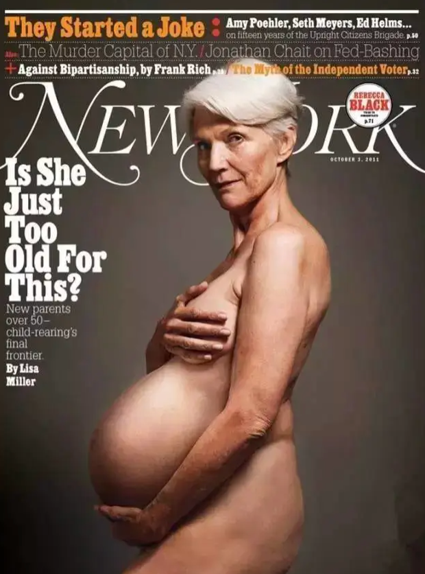 梅耶 · 马斯克意识到,年龄、长相、发色,都不是阻碍她的理由。那组照片上了《时代》健康版的封面,她全裸出镜,右手托着脸,有种安闲的神态,封面的左上角是当期话题,「如何活到100岁?」而后,《纽约》杂志邀请她再全裸出镜一次。拍摄现场的光线很刺眼,梅耶说,当时她62岁,但是杂志想让她看起来像70岁。和她同时拍摄的还有一位预产期就在一周内的孕妇,那位孕妇的肚子被PS到了梅耶身上。这张照片依然用以讨论杂志当期的话题,「她是不是太老了?五十岁以上的新手父母」。