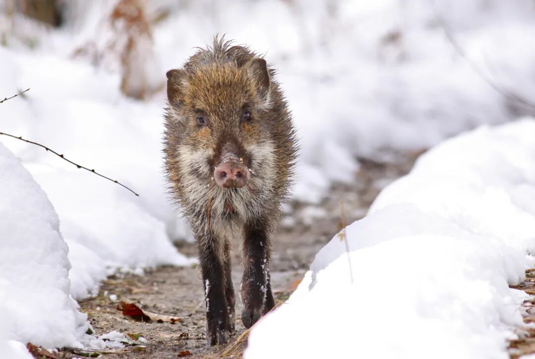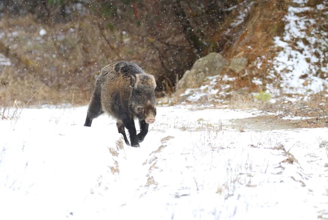 冬天的时候,一旦下雪,大量的动物没有办法觅食,野猪会在林子里奔跑,把雪层刨开,其他动物就有东西吃了。野猪给自己洗澡挖出来的水塘,也是很多动物非常关键的饮水点,特别是在干旱的时候。