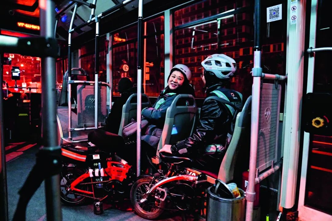 北京,胡彦平准备去往酒吧区,「那里活儿多」。在夜班公交上,遇到滴滴代驾是常有的事。