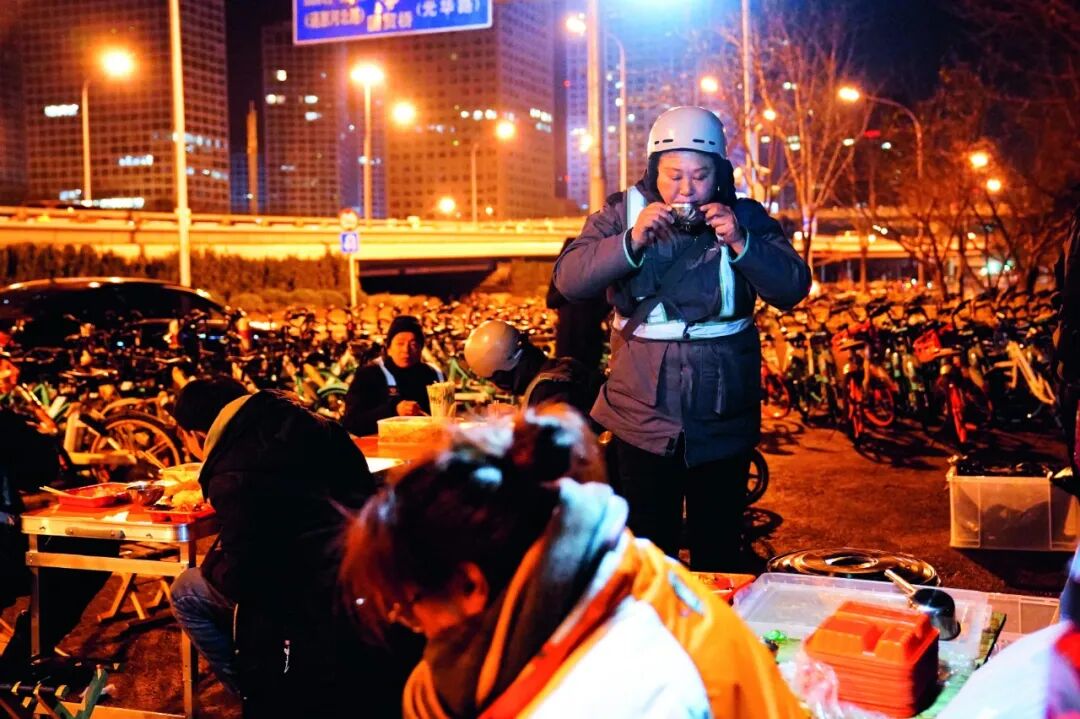 北京,一个白天人头攒动的公交站旁边,到了夜里成了胡彦平和其他代驾师傅们的「深夜食堂」。