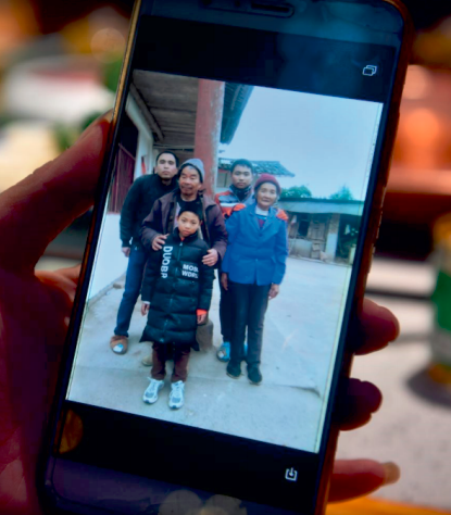 冯小琴将被资助的人家的照片存在手机里,累的时候拿出来看看
