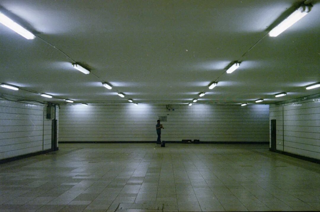 但在晚上,你听到那个地道里面很闷地传出来那个小号声,真的很好听,而且地道里面没什么人,人们都不想走那个地道,可能麻烦,就直接从平面上就可以过去,我下去看了好一会儿,感觉很好。