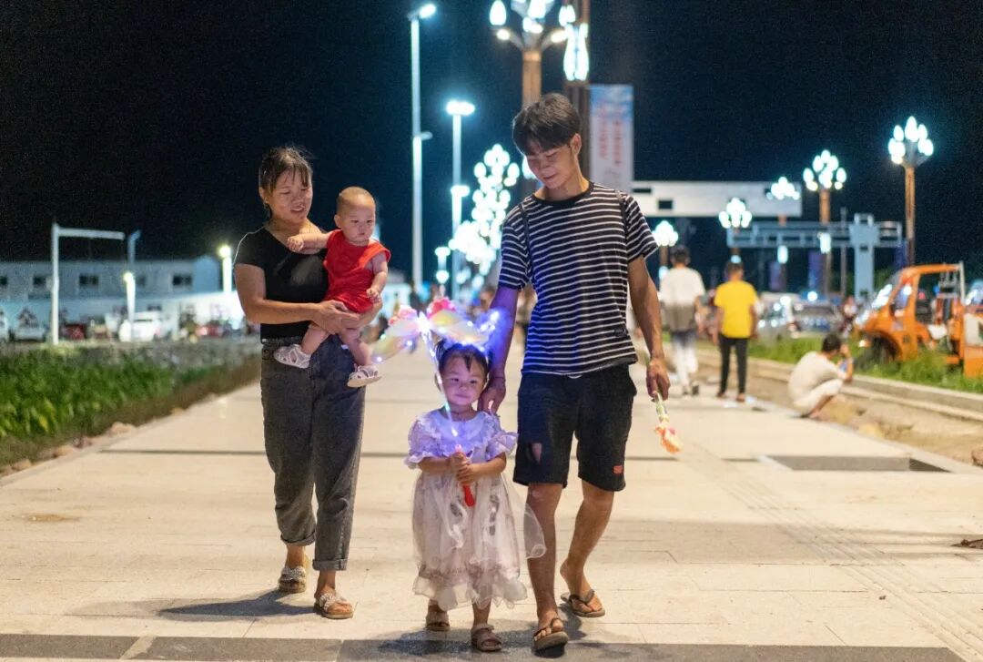 每隔一段时间,阿月会带着一家四口在县城逛逛夜市