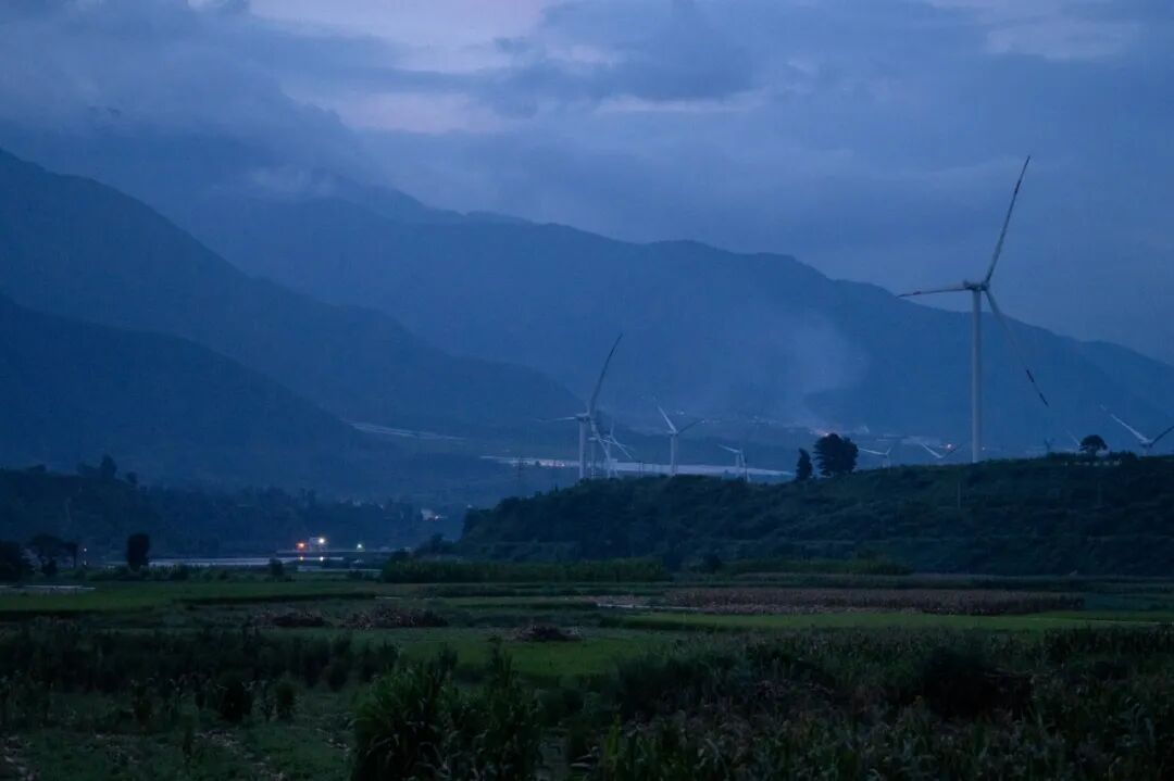 阿月家乡阿月村的田野上,几年前修了风力发电机