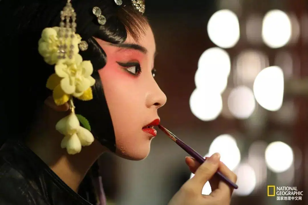 重庆川剧院的演员正在补妆。图/@美国国家地理