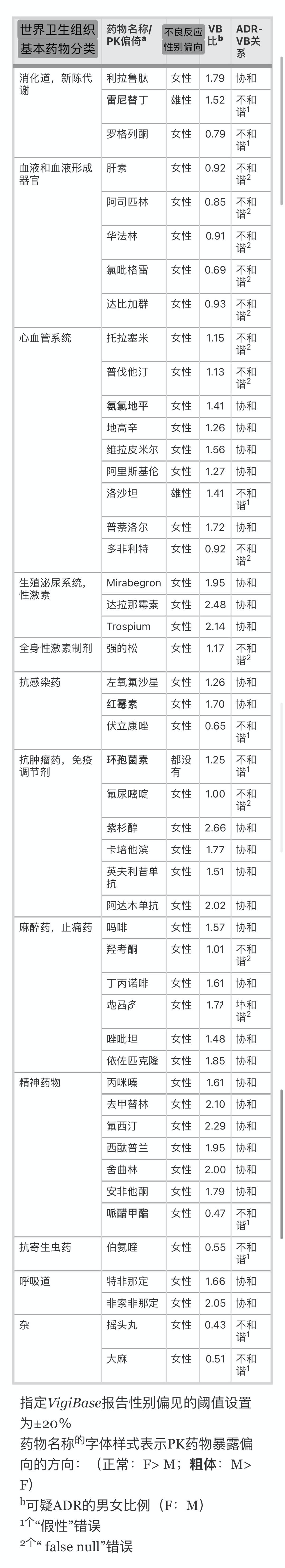 下面的图示是女性承担药物不良反应和男性承受的对比(滑动阅读):