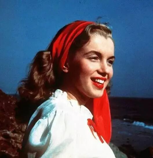 上世纪40年代,玛丽莲·梦露头系红色丝巾的海边造型风靡无数人。