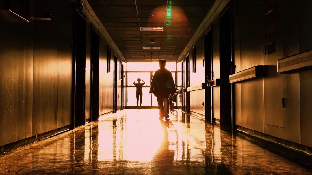 一天清晨,小范值完夜班出来,正好遇见奶奶披着病号服往窗户方向走,暖色的阳光沿着走廊一起拐弯,奶奶的影子被拉得老长,她走得挺快,衣摆被风掀起来,那一瞬间,小范什么都来不及想,凭直觉按下了拍摄键。