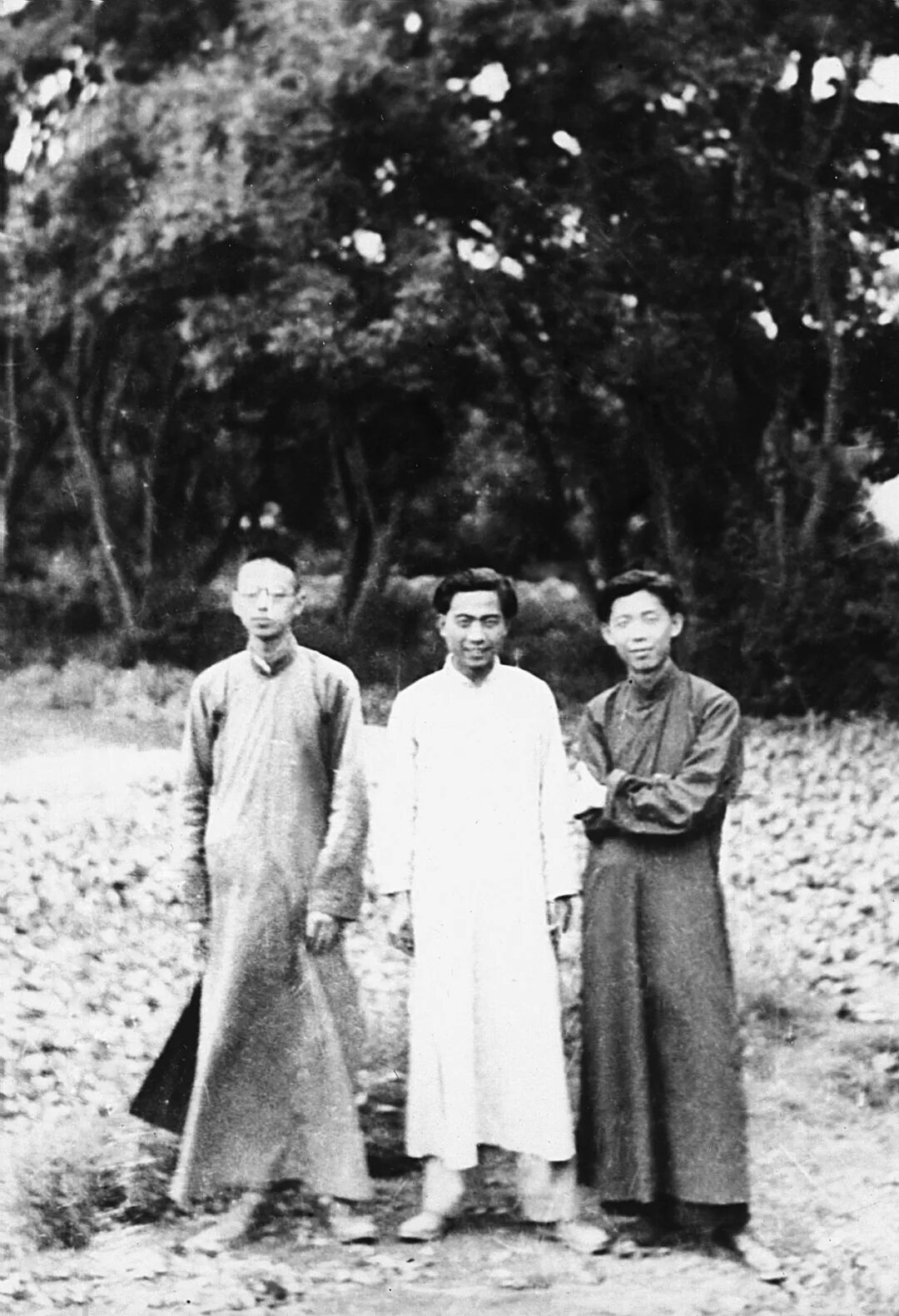 在西南联大读书时的汪曾祺与同学李荣(左)、朱德熙(右)