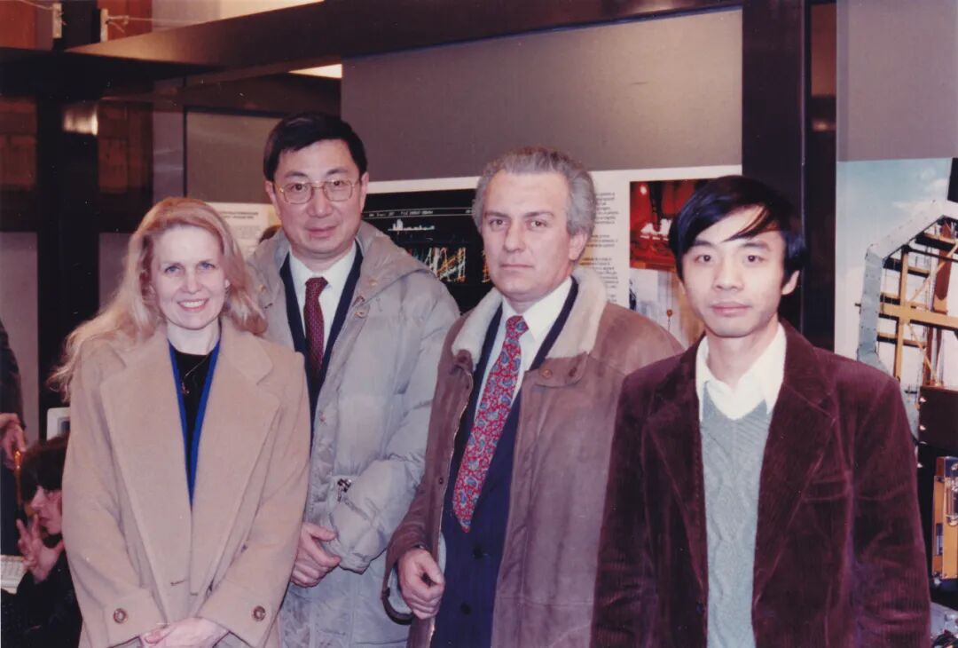 王贻芳(右一)与导师和丁肇中及丁肇中夫人 图源受访者