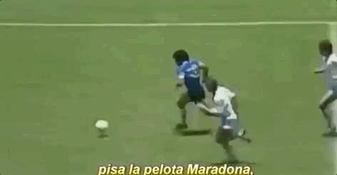 这是马拉多纳一贯给人的印象,球就像黏在他的脚下,他能让球「随心所欲」,对手常常拽不到、拉不住、围不住,通过巧妙的一扣一拨,就能成功过人。