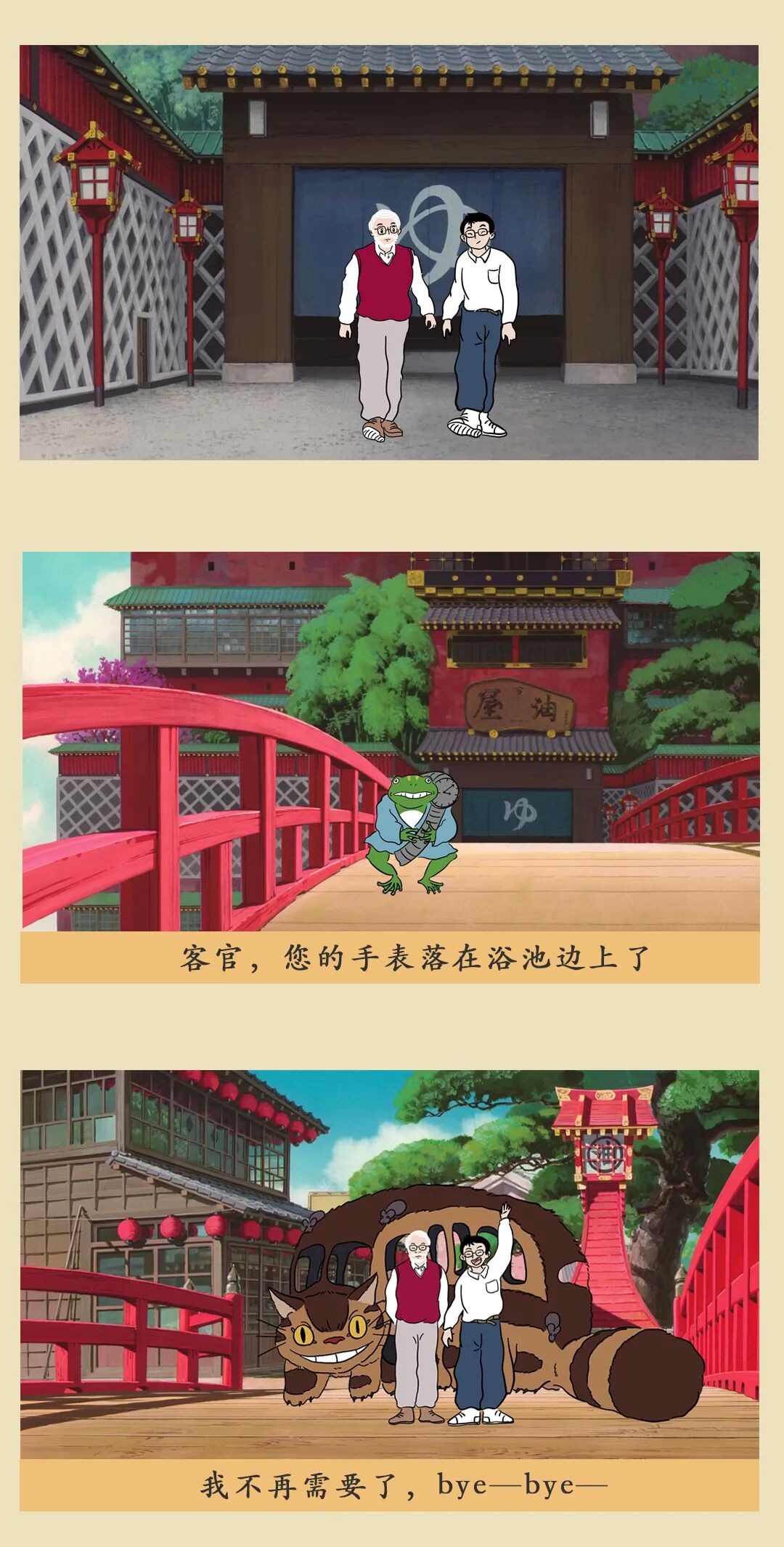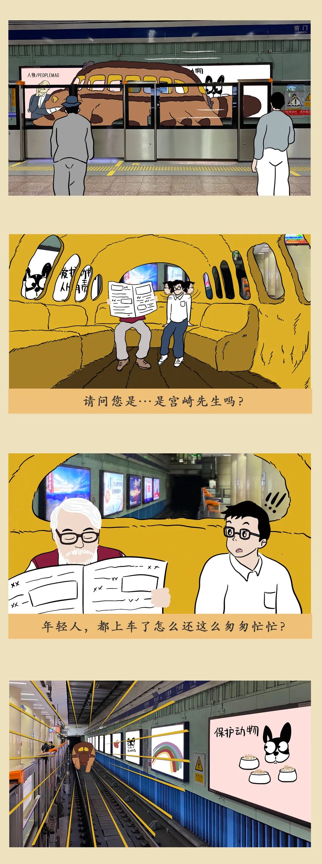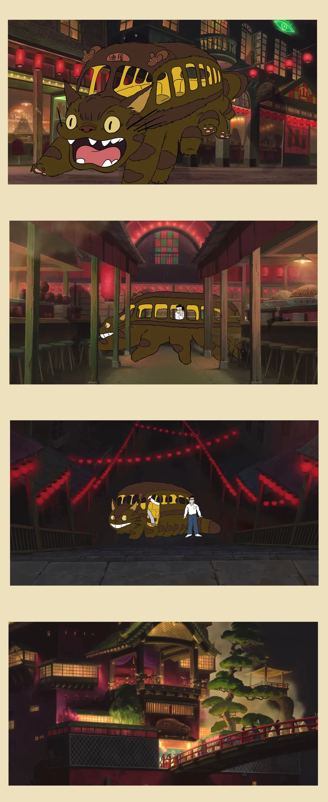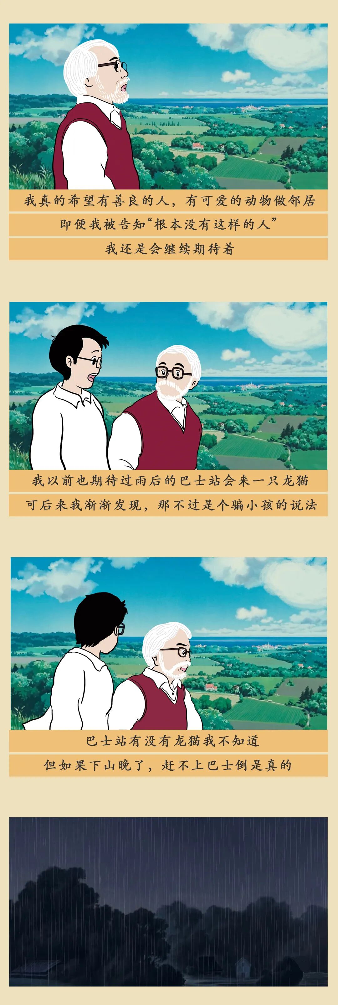 不仅是对童年的怀念和重温,我们更想强调「相信」——保留清新的想象力和好奇心,相信油屋和木灵真的存在,相信纯真和善意会得到报偿,相信繁杂的工作之外,当我们抬起头,会看见楼宇长出大树,龙猫坐在树梢,而猫巴士在空中飞翔。