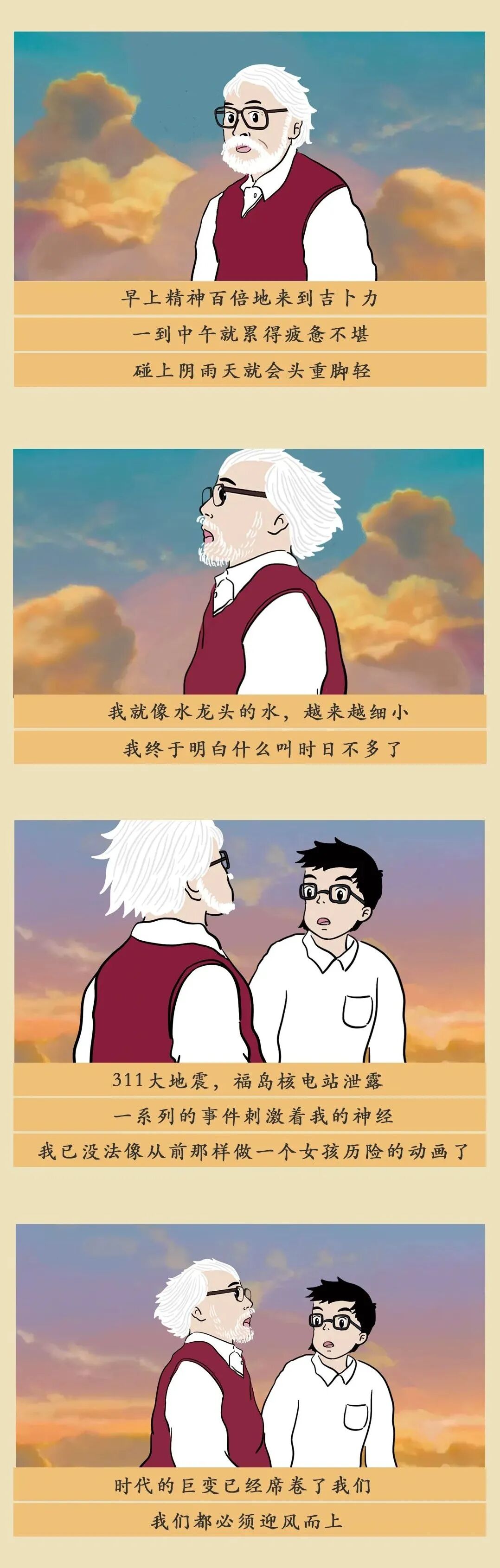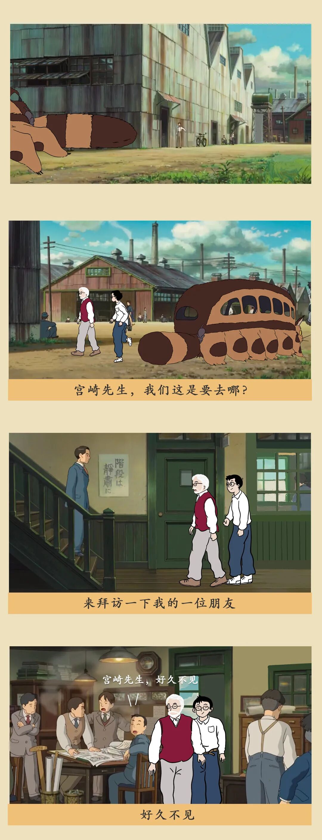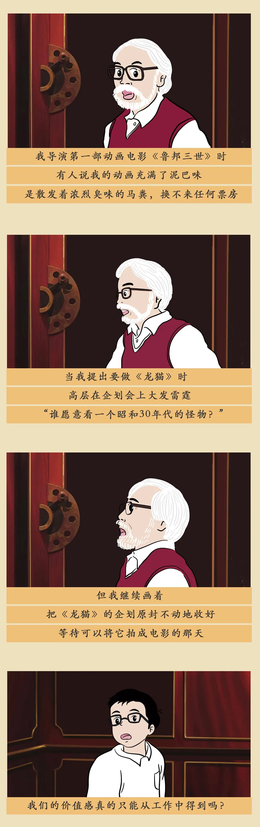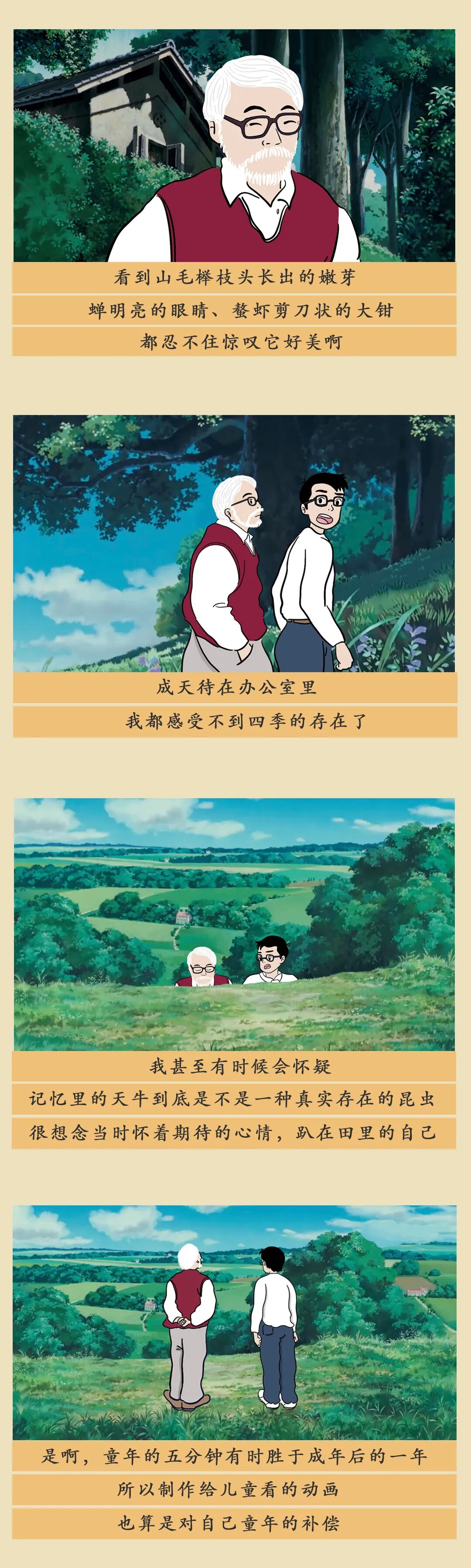 但想象力也有消失的危险。成年以后,我们努力做个大人,为生活奔波,时而陷入焦虑、迷惘、自我怀疑。我们将这样一个普通的成年人纳入到故事中,与宫崎骏一起完成了这趟旅程。