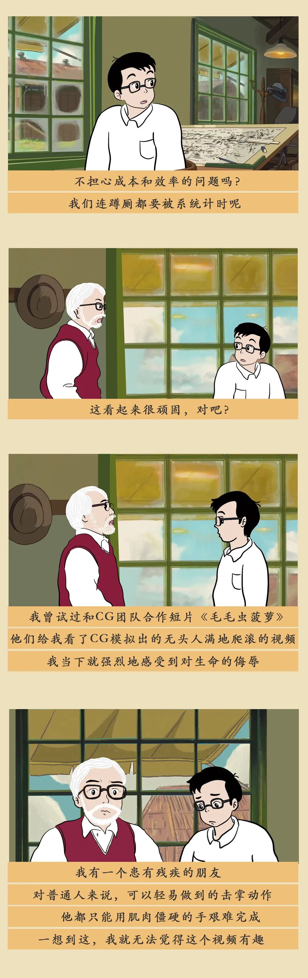 这段记忆让宫崎骏一度陷入自责和痛苦,他把未尽的温柔放在作品里,希望制作这样一部动画,让动画里的孩子在这种情况下说出「让她们上车吧」。
