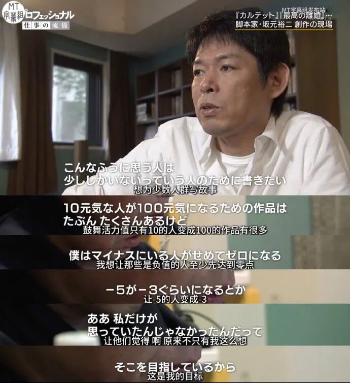 他不说大道理,只是把生活的哲学揉进了台词。这些细密的台词总能击中人心。微博上,坂元裕二的台词截图比他的名字流传更广。