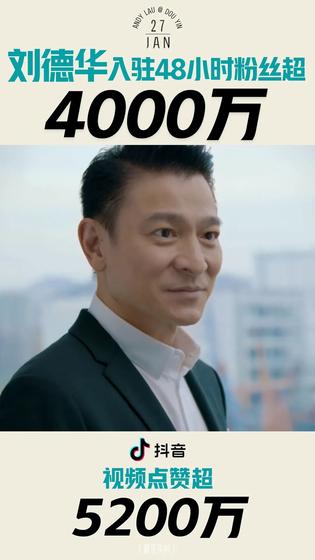 从另一个层面来说,抖音更像是「视频朋友圈」,刘德华的很多影迷歌迷都在抖音。选择抖音开通他的全球第一个社交账号,是因为在过往的电影宣传中,在抖音的互动体验很好,影迷和网友也很积极、很有趣;而且短视频互动,没有了文字的冰冷感,而是一种更有温度的接触。
