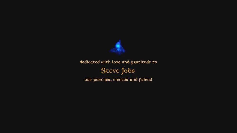 在《勇敢传说》的结尾,出现了这样一行字幕:「向我们的伙伴、导师与挚友史蒂芬·乔布斯,致以诚挚的爱与感激。」《玩具总动员3》中出现的ipod播放器,《赛车总动员》中有着「苹果」标志的84号赛车,都或直白、或隐蔽地表达了皮克斯对乔布斯的缅怀与敬意。