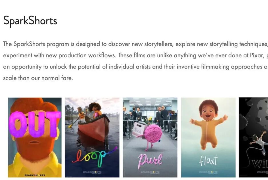 这些优秀的短片制作都来自皮克斯的短片项目SparkShorts(火花短片)。它是一个实验性的动画短片计划,要求艺术家们在6个月的时间内制作出一部短片,在此期间,公司会给予他们最大的支持。与更为人熟知的大制作影片不同,短小精悍的形式让皮克斯动画短片更具灵活性与个人色彩,也更容易贴合与回应当下的社会议题。正如其名,Spark既可以是灵感的「火花」,也可以是动词「激发」。它像一串微弱而坚定的小火苗,启迪创作者们去观照自身的生活。