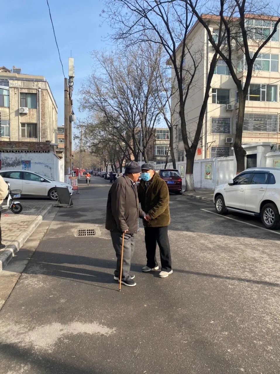 有天早上陪90岁的爷爷遛弯,回家的途中爷爷碰到了他的朋友,照片是两个耄耋老头儿的社交时刻。他们都见证过彼此的年轻,也很为他们幸运在这个年龄对方还在。