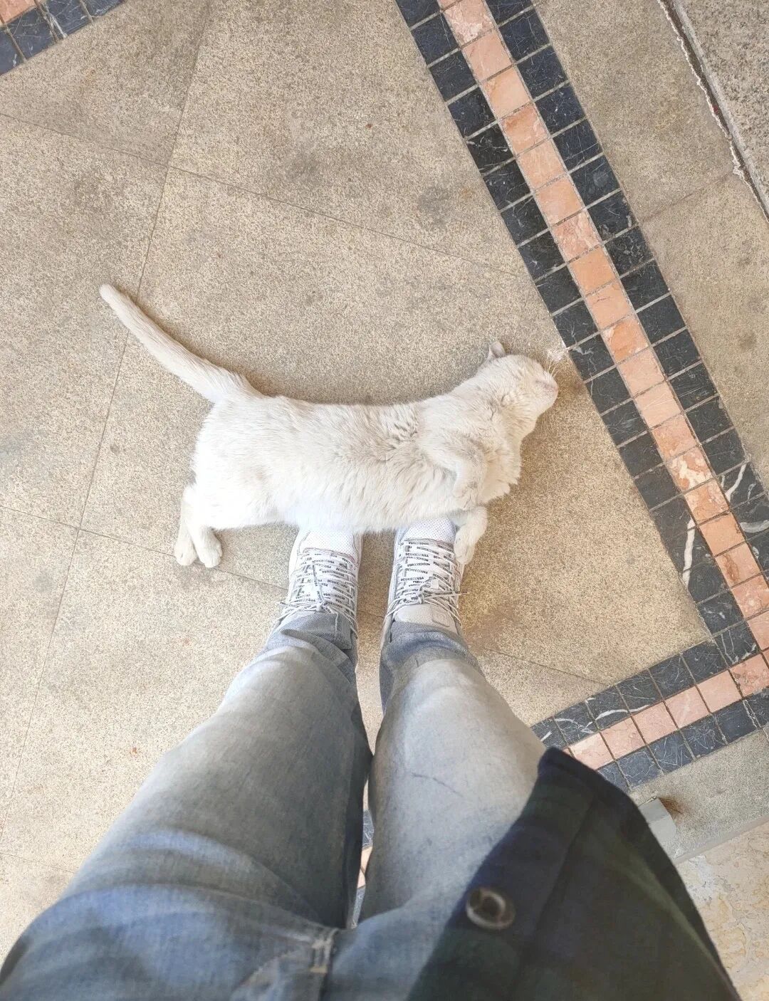 下班回到家,看见猫在家门的地毯上坐着,以前从来没注意过妈妈买的地毯上写了什么字,此时此刻,被融化了。