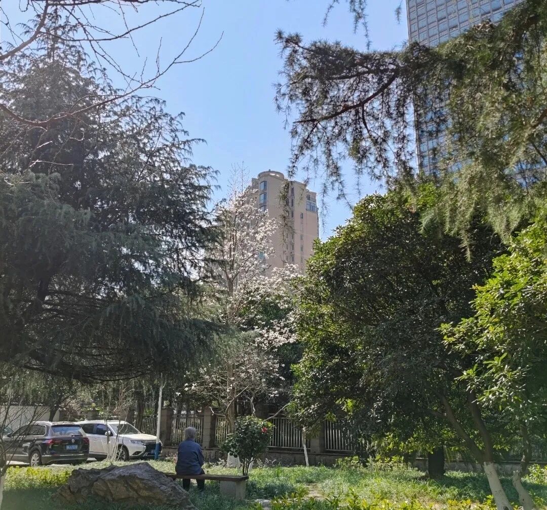 中午去图书馆还书,看到一棵开花的白玉兰树,像坐满了鸽子。我兴冲冲过去拍照,看到一个老奶奶安静地坐在树下看花。仿佛看到了多年后的自己。
