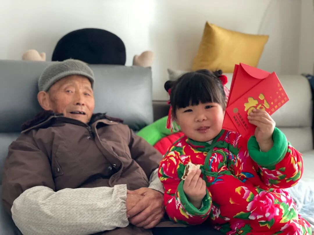 四世同堂,姐姐的女儿和爷爷,来之不易的团聚很开心。