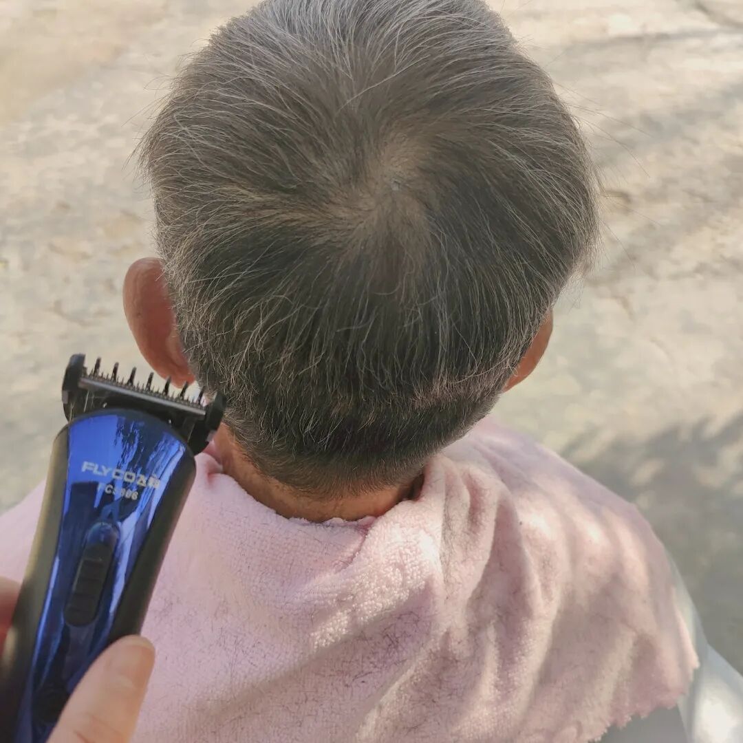 我要开学了,走之前给爷爷剃了个头。爷爷说,还要等我暑假回来给他剃头,我说,好的,一言为定。