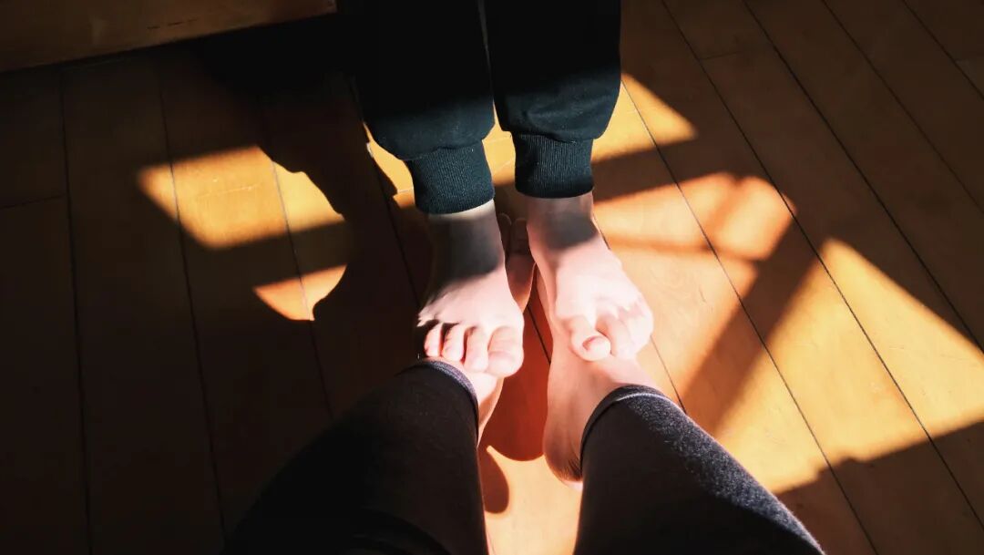 过年宅在家里,坐久了觉得脚有点冷,发现有阳光照进屋里,于是把脚伸出来晒太阳。小外甥女看见了问我在做什么,我说我的脚很冷,要晒太阳。她听了以后说她的脚特别暖和,然后脱掉了袜子把脚轻轻搭在我的脚上,的确暖融融的。