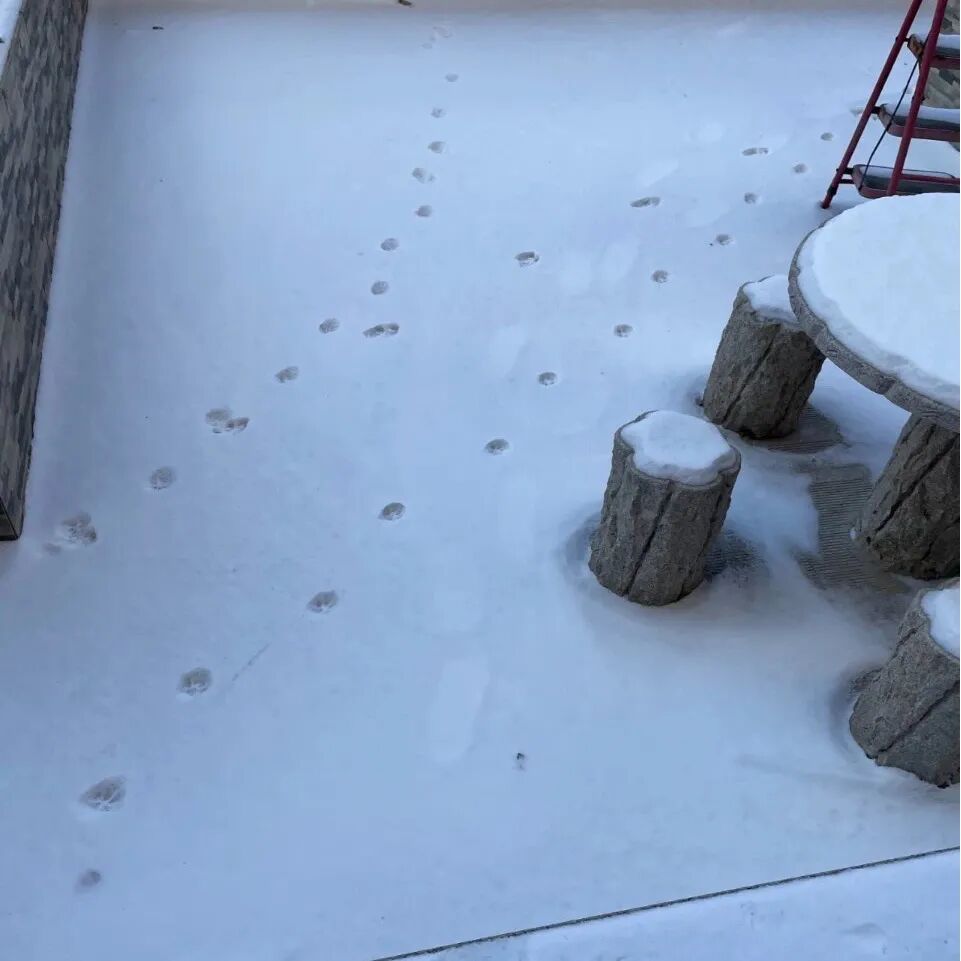 过年排除万难回了家,有天早上起来发现下雪了,院子里留下了一串小猫咪来过的痕迹。