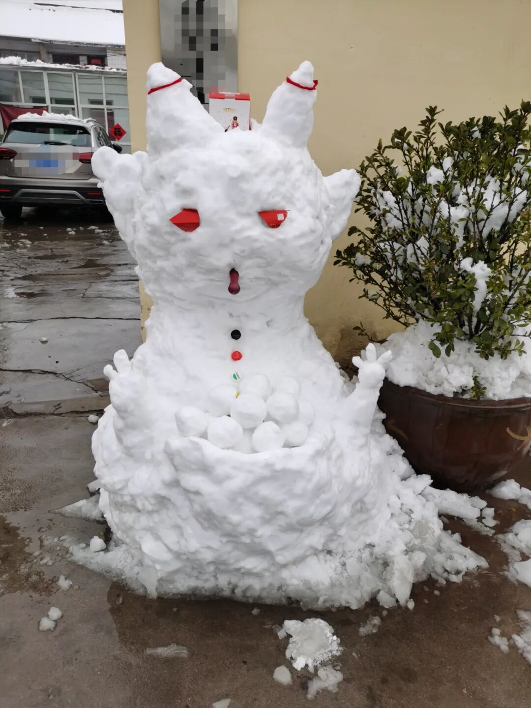 24号下大雪,昨天公司的男孩子们在门口堆了这个雪怪兽,觉得他们好可爱。