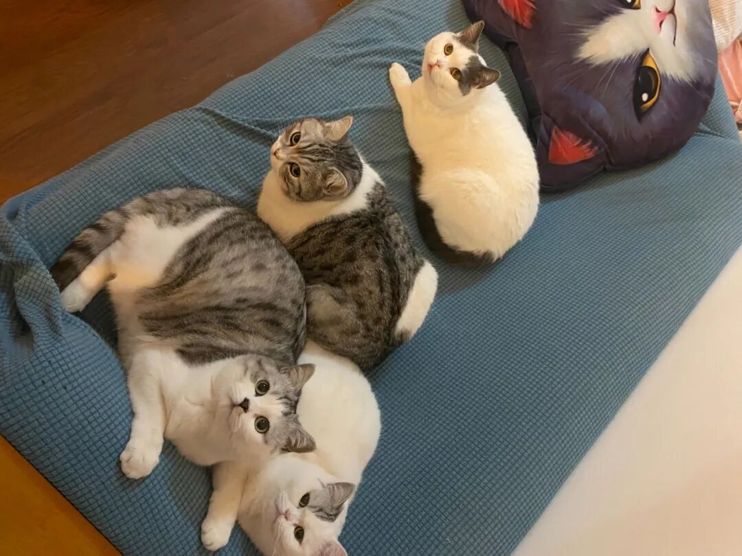 连续加班一周到半夜,拖着疲惫的身体回到家,本来沮丧到第二天就想提离职了。回家一开灯,四只猫都没睡,齐齐的在门口的沙发上等我,四双大大的眼睛看着我仿佛在说,你终于回来啦。
