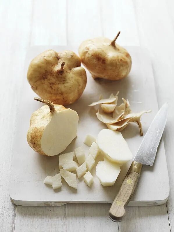 类似荸荠、雪莲果,白地瓜吃起来也是十分脆甜的。它不像荸荠那么小只,可以大口大口地咬,又不像雪莲果香气那么明显,很容易就能够接受。夏天吃最适合,特别清甜、特别解暑。86版《西游记》里的人参果,就是那个九千年才能结果、长得跟娃娃似的、唐僧死活不吃的人参果,就是它做的。