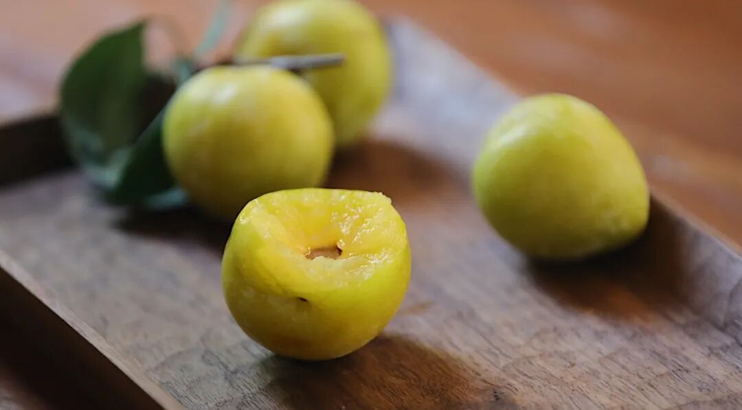 最近发现,小时候最常见、最普通的水果们都变成了网红产品。先是油柑,各大奶茶品牌争相制作了油柑饮品,装在精致的玻璃罐里,还非得冷藏保存。我买过一次,想要回味童年记忆,结果完全不是从前的味道,是一种极其标准化、城市化的口味。我们那里油柑喊作余柑,可以生食,入口有些涩,回味甘甜,满口生津。新鲜余柑色泽透明,很像绿弹珠。南方家庭喜欢腌,最简单只是放盐,埋进玻璃罐子,放上十天半个月就能吃了,咸咸甜甜的。打一勺余柑露,冲水喝简直妙哉。