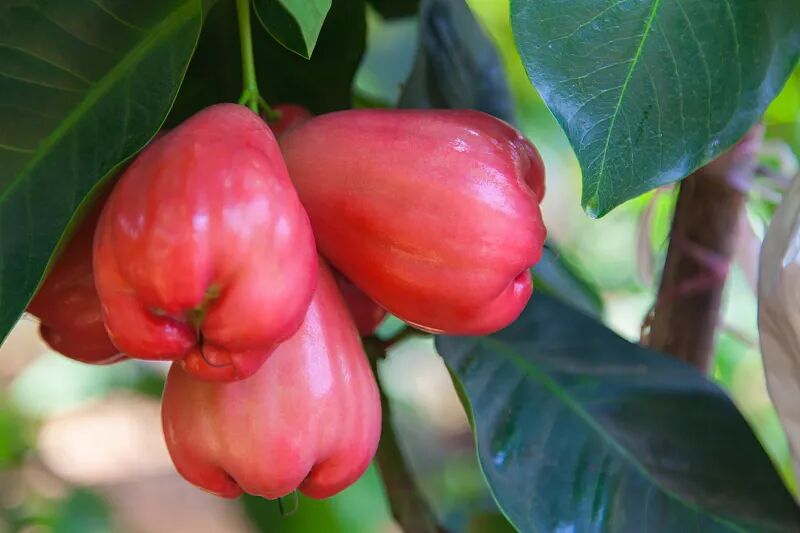 还有一种水果叫莲雾。它的形状像一个迷你的冬瓜,红到发紫的外皮,里面是满是水分的白色果肉,咬下去会发出清脆的声音,口感极好,我这个吃梨爱好者,很快就迷上了莲雾。妈妈告诉我,夏天吃莲雾可以解暑,加冰糖炖煮一下,还可以止咳。喜欢莲雾更重要的原因是,它不用削皮。