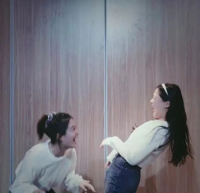 这对搭档在生活中就有极高的默契。她们经常有那种「周围人都没有反应,只有我们俩懂」的时刻,目光一对就互通心意。大家聊天经常出现的场景是,金靖说完其他人没跟上,她扭头找刘胜瑛,你懂我意思了吗?刘胜瑛说,我懂了,我来给大家解释。