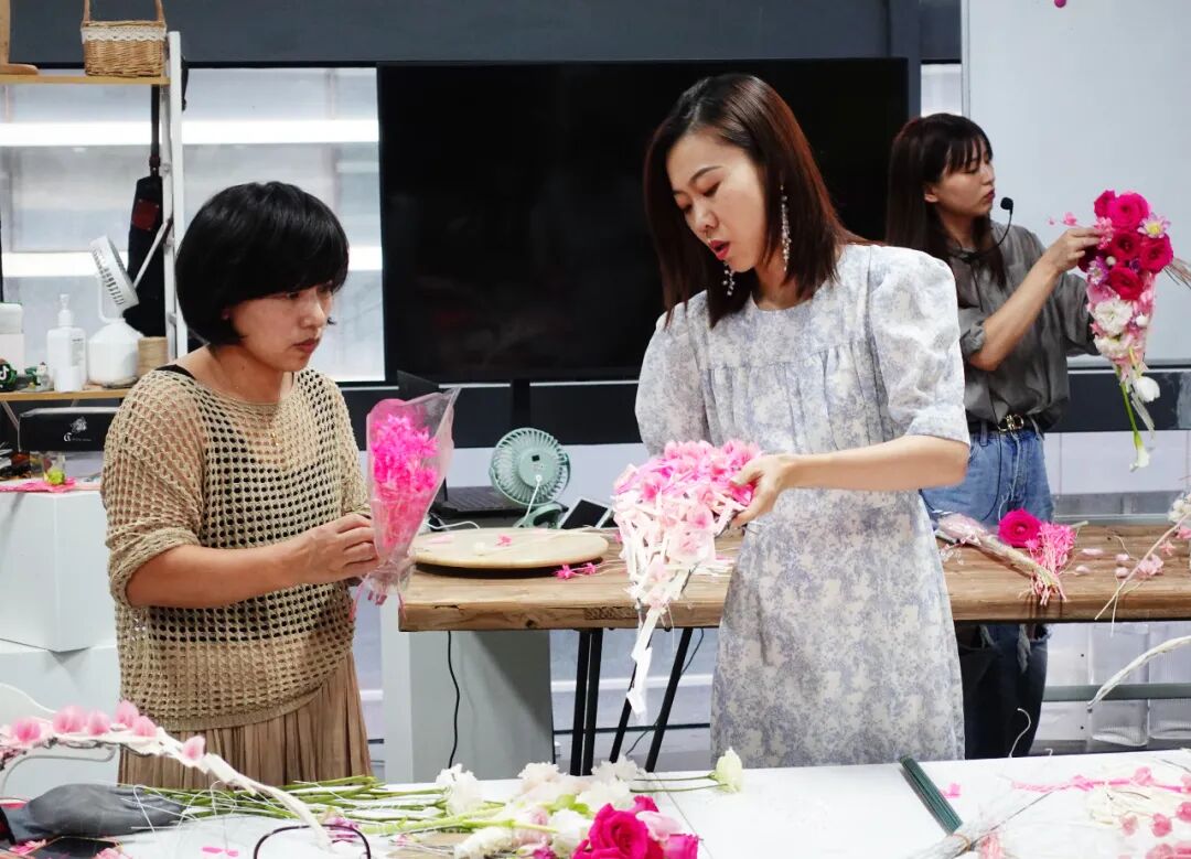 现在,赵大发的工作室每月都开2-3轮线下培训课,有为花店新手准备的创业班,也有提高班。花艺需要实操,每个班只能控制在10-20人,很多人需要排队。