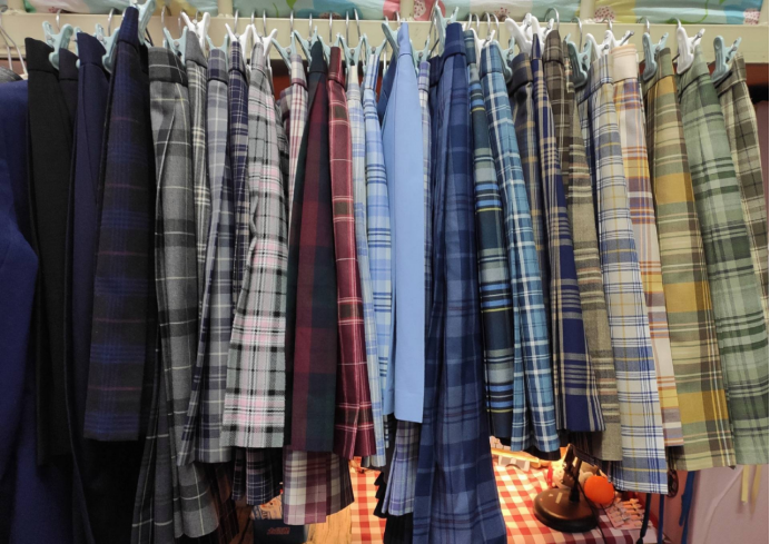 领结、衬衫、西服、水手服、制服包、制服鞋,还有适合秋冬穿的毛线开衫外套,刚入秋时套在短袖衬衫外的背心,不同风格要搭配长短不同的小腿袜……这些其实都是基本的搭配,也是早已形成体系的制服文化审美众的一部分。小昭房间外置的衣架上,就按照色系整齐地挂着60多个花花绿绿的格子领结。