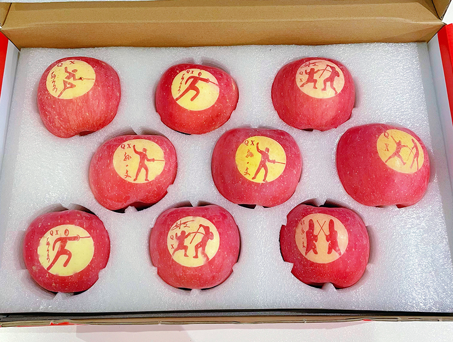 我们家有一片果园,10月份回去的时候正好是结果的季节。进去以后我就发现枝头的红苹果上都“晒”出了击剑的烙印,很惊喜和感动。这是我爸的主意,他知道我从小就爱吃苹果,所以把击剑的印记留在了苹果上。从小到大,他一直都在背后支持着我。