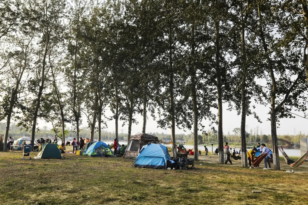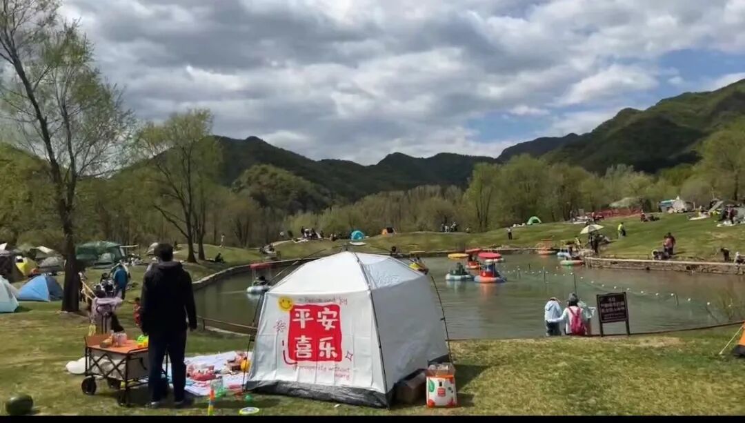 清明节的时候,彭诗远去了通州一个可以露营的公园,她形容,那是她见过最夸张的露营地。「人真的是暴多」,目之所及不是花草树木,而是密密麻麻的帐篷,两个帐篷之间只有「大概一米」的距离是可以走人的。
