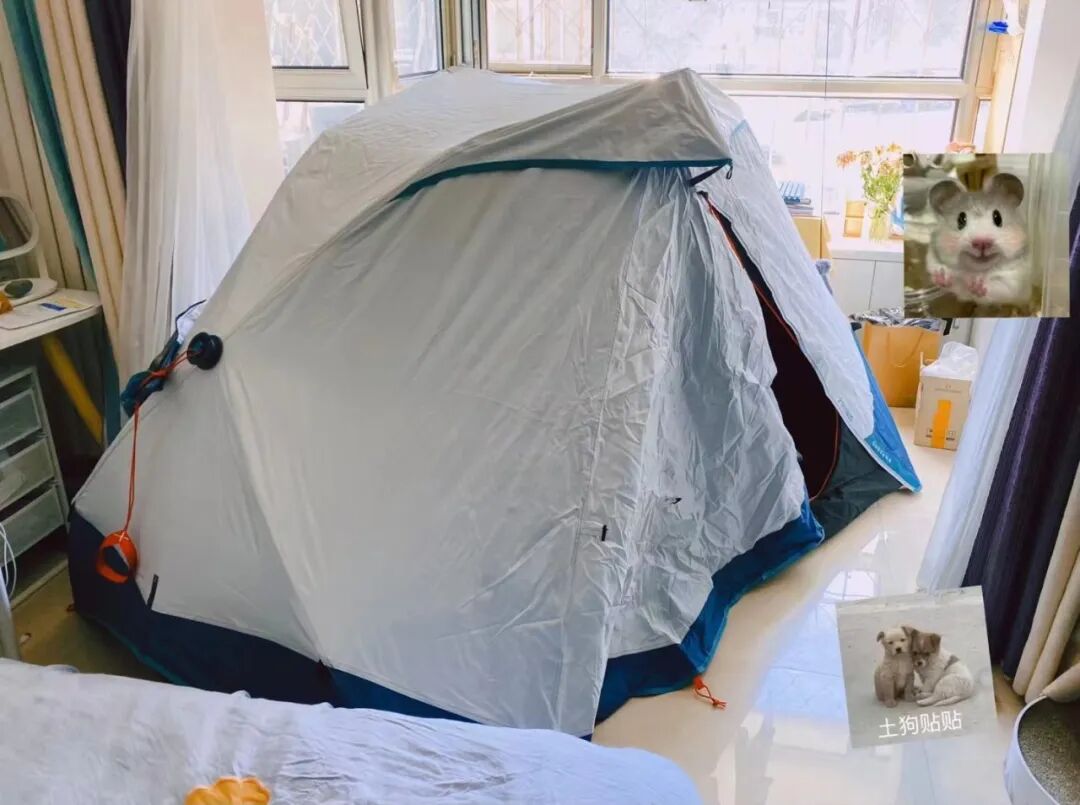 还有人健康宝弹窗,无法到任何公共场所,也依然没有放弃露营,就在小区里搭起了帐篷,摆了几把露营的椅子,放了一个露营箱,儿子在小区里跑着玩飞盘,她泡了一会儿茶。虽然没多久就被小区保安提醒不许露营,她还是感到「快乐」,「挺不错的体验」。