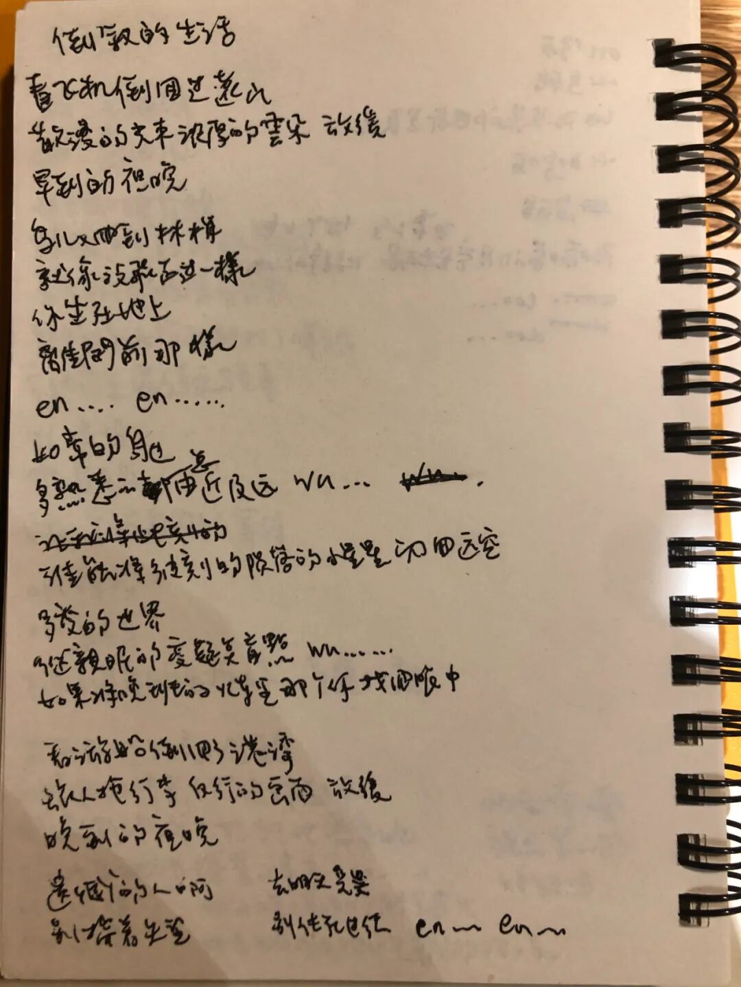 还有给金池写的《哭着吃饭的人》,写的是我遇到的一个司机的故事,是一些为生存疲于奔命的人的生存状况;给李易峰写的《倒叙的生活》,那个时候是疫情之初,也有一种渴望,能回到正常有序的生活里,所以每一句歌词都是倒叙,「看飞机倒回过远山,散漫的光束,浓厚的云朵放缓,早到的夜晚,鸟儿又回到了林梢,就像没飞走过一样,你坐在地上离开前那样」。这些都是我非常喜欢的。