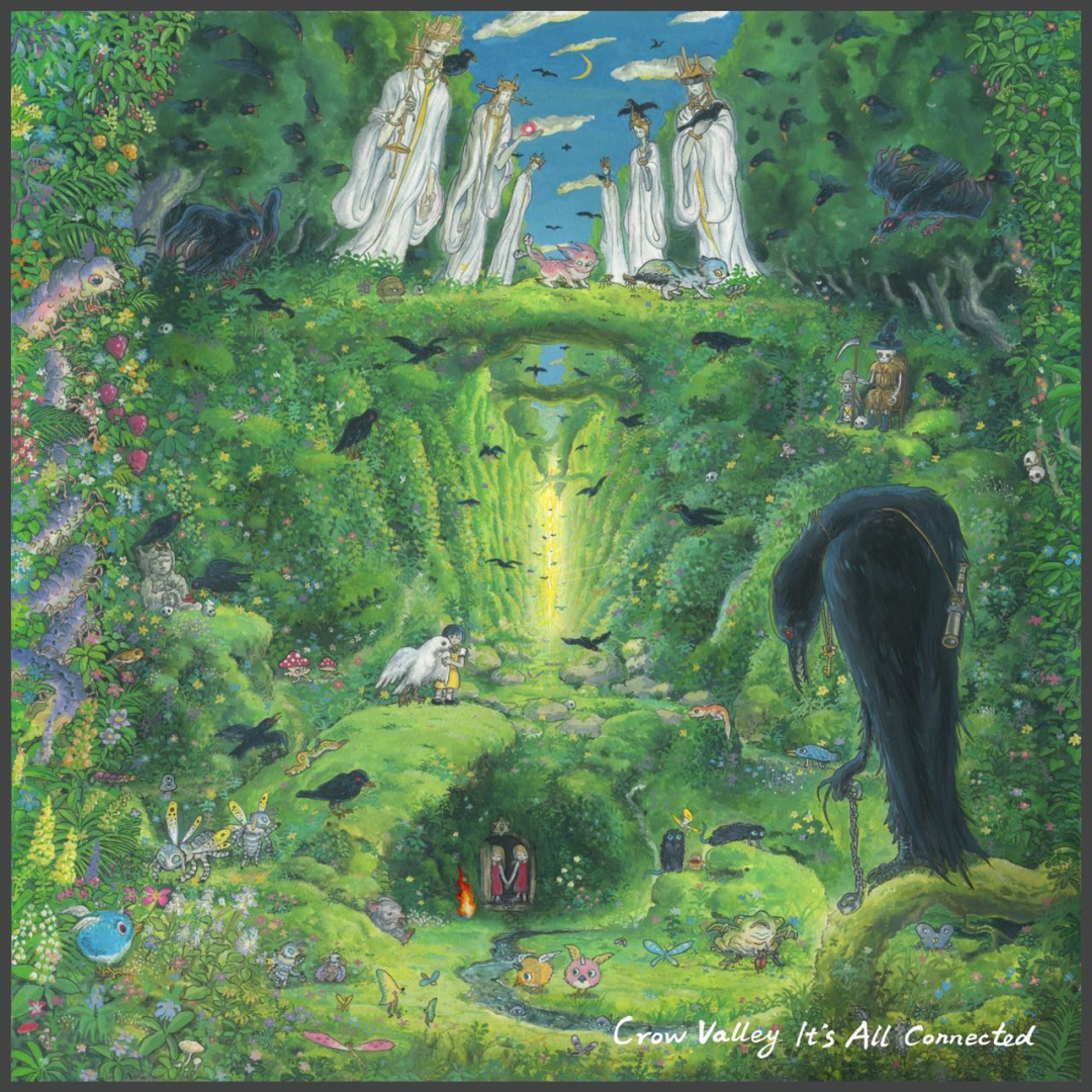 新专辑名字叫《乌鸦谷-晕晕众生,命命相连》,“乌鸦谷”就是刺猬乐队想象着的我们生活的世界。专辑封面描绘出了一个具象的乌鸦谷,这里孕育着一切生命,神明在高处停留,乌鸦无处不在,而峡谷之下是两个牵着手的孩童。