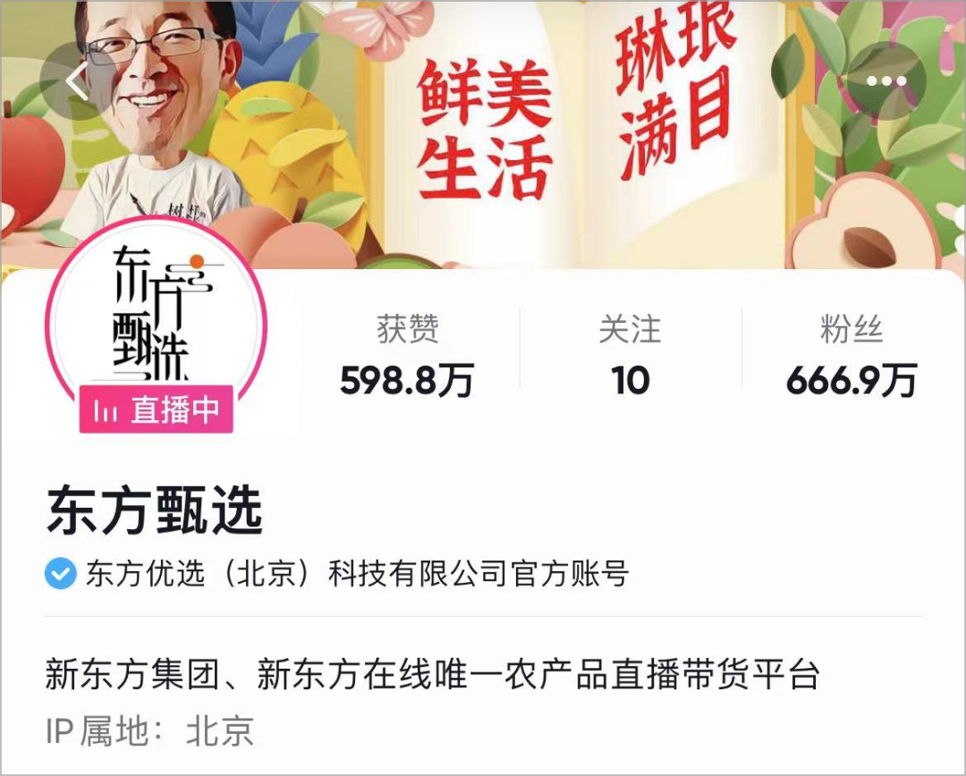 5天时间,董宇辉所在的东方甄选直播间粉丝数从100多万涨到了660多万。微博上,#新东方主播#、#新东方在线涨超50%#等话题,先后登上热搜。正逢618期间,商业效应来得更明显,由于前来问询的人太多,东方甄选的工作人员不得不在朋友圈抱歉表示,由于好友请求太多,只能选择性通过。