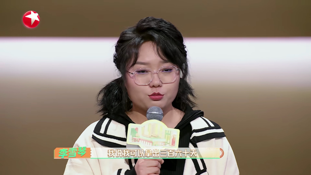 她通过短视频走红,后来又讲起脱口秀,现在用作品证明自己是个真正的喜剧人。演出结束后,台下的评委问李雪琴,“你一年能拿出100天来干情景喜剧吗”?李雪琴给出的回答是:“我能拿出来360天,剩下5天我得放假。”所有的人都被她逗笑了。