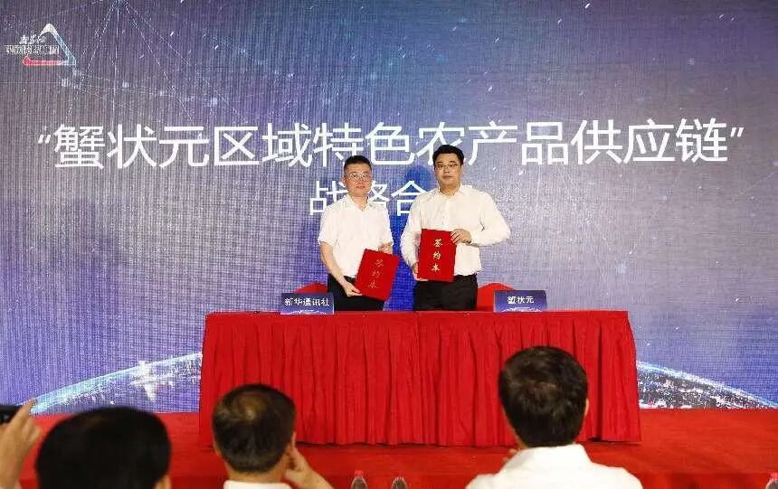 7月5日,蟹状元与新华社民族品牌工程杭州直播基地签署“蟹状元区域特色农产品供应链”战略合作。此次合作致力于打通农产品线上推广、营销、销售的全链条,充分发挥杭州直播基地传播、渠道、平台等方面的优势,通过“短视频直播”赋能电商平台,在当下为中国特色农产品讲好全新的故事。