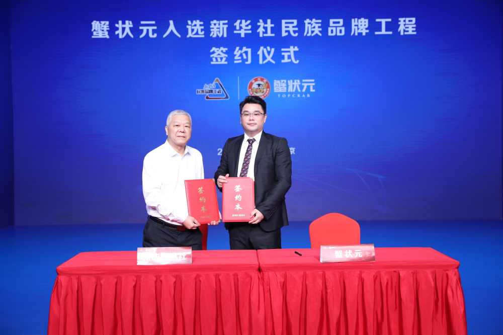 6月29日,蟹状元入选新华社民族品牌工程,在北京举行了签约仪式。“新华社民族品牌工程”是响应品牌强国战略的综合服务体系,旨在“服务民族企业发展,助力中国品牌建设”,所服务的企业多数是世界500强、中国500强和行业领军企业。