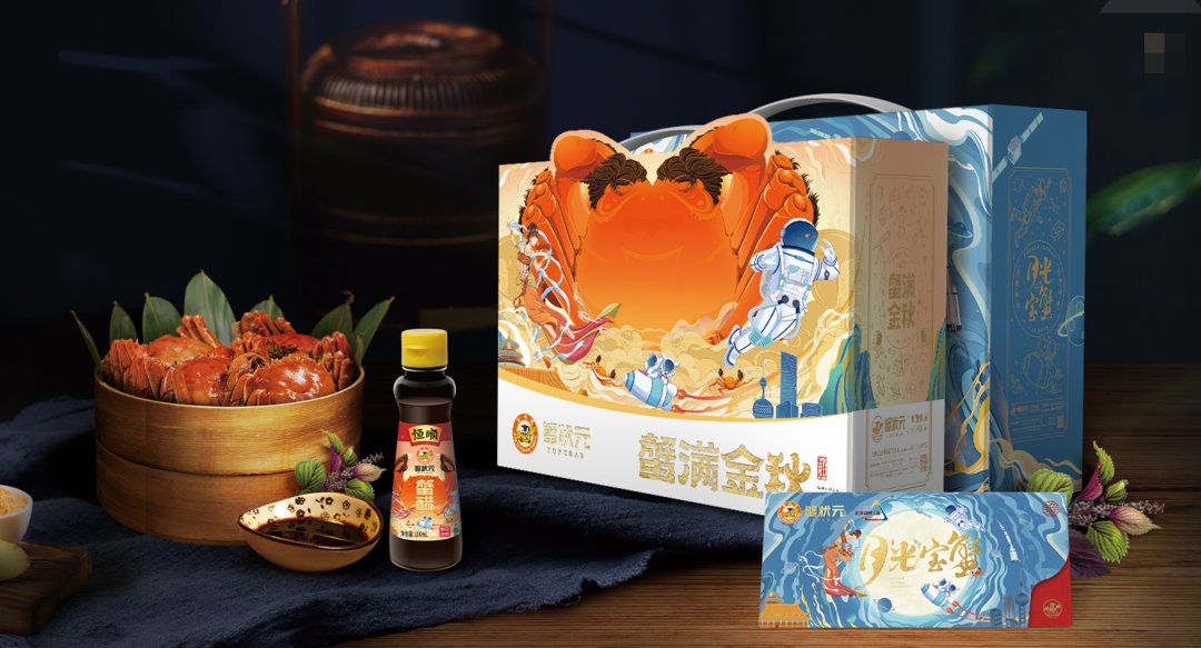 中秋又至,蟹状元推出了2022年金秋新品——月光宝蟹礼盒。匠心独运的设计、新颖的国风插画和细致的制作工艺,展现出东方美学的意蕴悠长,同时融合了月亮、嫦娥、火箭、宇航员等元素,致敬中国的航天探索精神,体现出蟹状元精益求精、创新进取的企业精神。