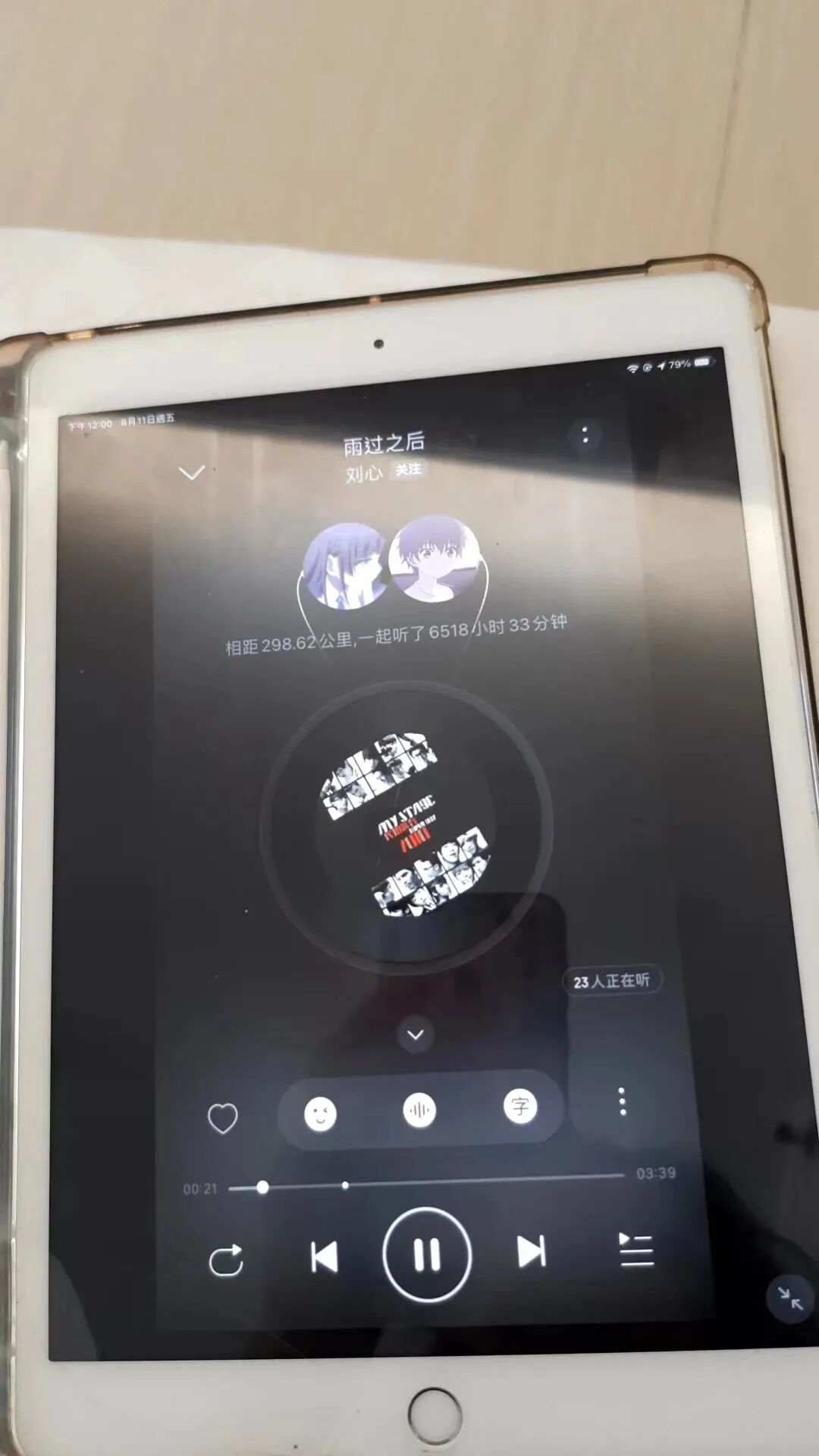 我几乎24小时用ipad放歌听,他只要不忙也几乎不断,甚至很多次他去隔壁宿舍和同学喝酒也会戴着耳机。每天的歌单一更新,我们就会一起听。他喜欢李荣浩,我喜欢的歌手很杂,我们从没有切掉过对方的歌单。