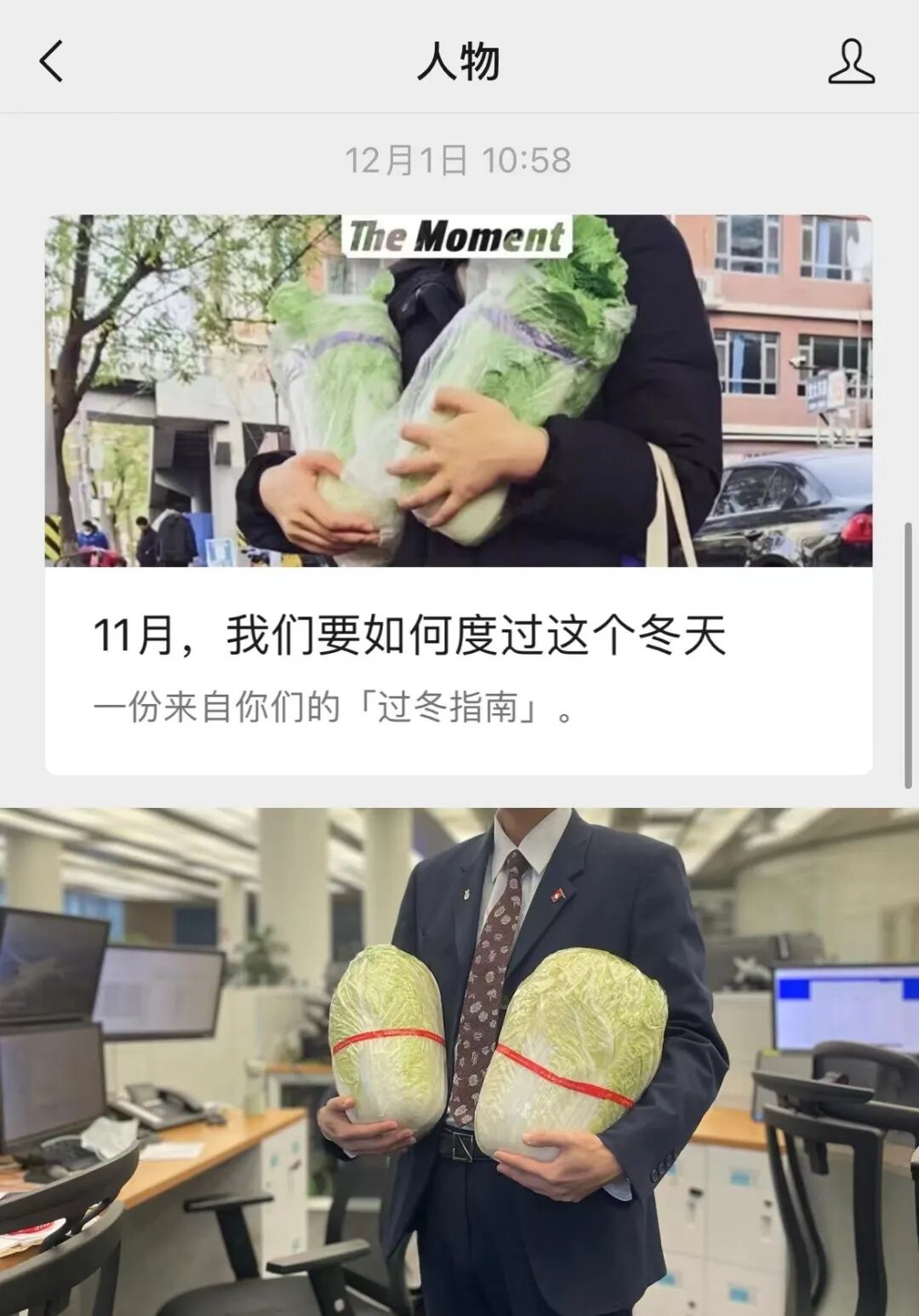 抱两棵大白菜,复刻一下去年今日的Moment封面。